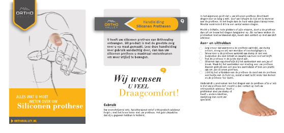 U heeft uw siliconen prothese van Orthovalley ontvangen. Dit product is met de grootste zorg voor u op maat gemaakt. Lees deze handleiding voor gebruik aandachtig door, dan kan uw siliconen prothese u maximaal ondersteunen om weer vrij(er) te bewegen.