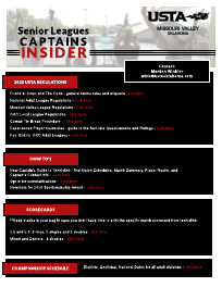 New Captain's Guide to Tennislink - find Match Schedules, Match Summary, Player Roster, and Captain's Contact info - click here Opt in for communications - click here Nominate for 2020 Sportsmanship Award - click here